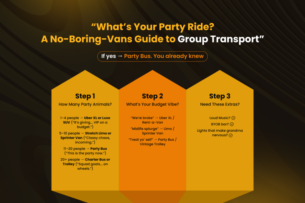 That’s the difference the right party transportation makes. It turns “just getting there” into a full-blown experience.